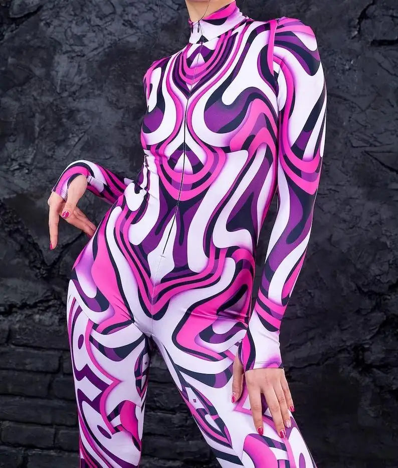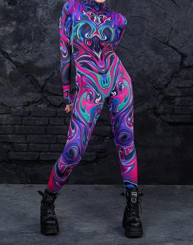 Unsere Festival Jumpsuits punkten mit maximaler Bewegungsfreiheit und auffälligen Prints – ideal für durchtanzte Nächte auf Techno- und Rave-Festivals. Das figurbetonte Kleid hingegen ist der Inbegriff von sexy Techno Eleganz: stretchy, stylisch und ultra comfy.