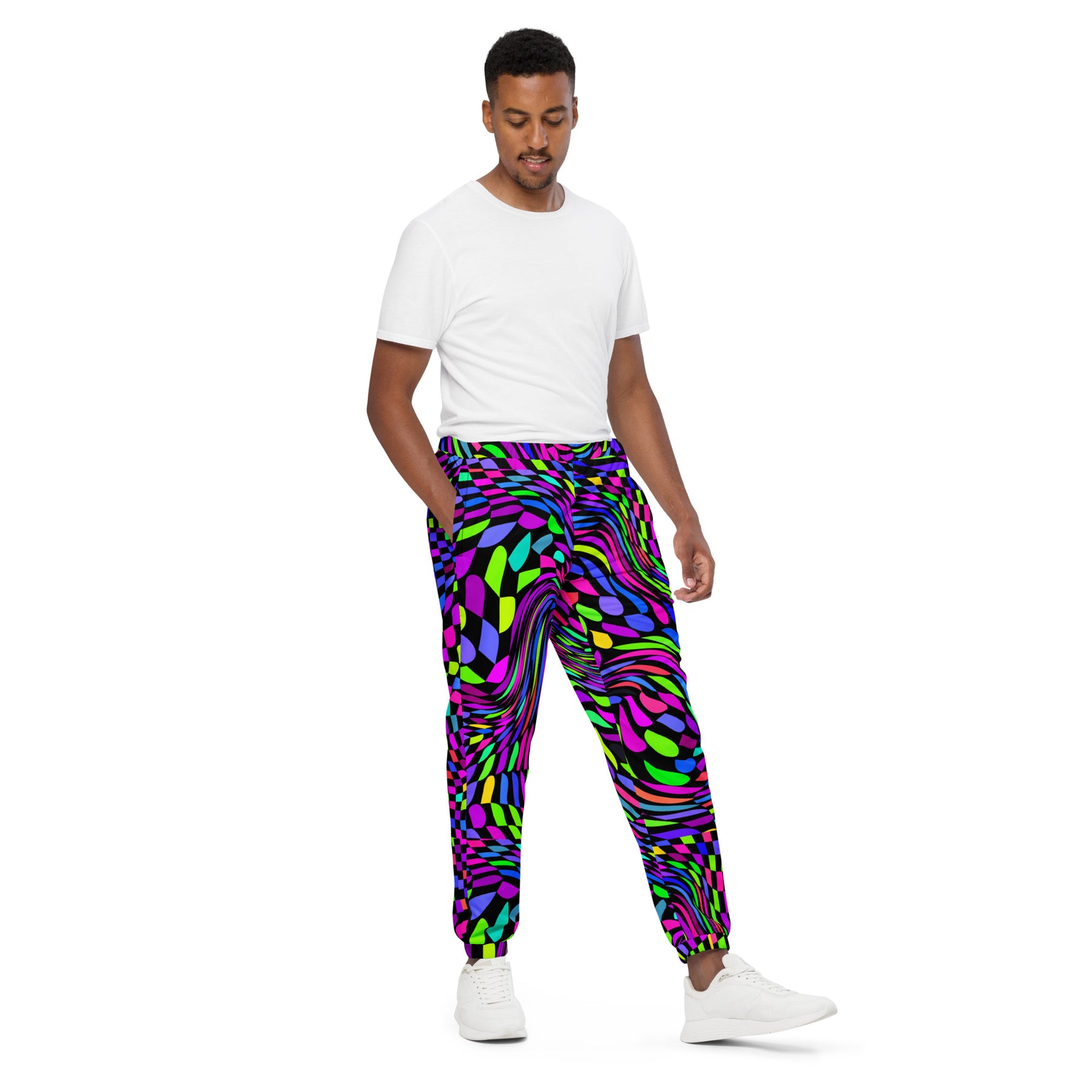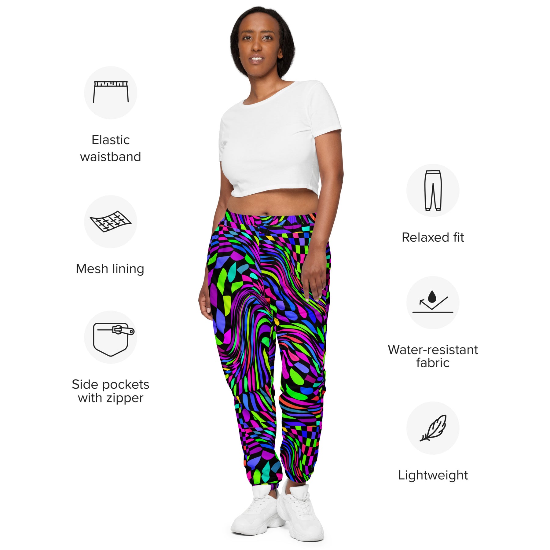 Die Unisex-Trainingshose ist dein neues Lieblingsteil für Festivals, Workouts oder zum Stylen eines Streetwear-Outfits. Das wasserabweisende, leichte Material und das Netzfutter sorgen für Komfort, während die elastischen Knöchelbündchen es dir leicht machen, deine Kicks zu zeigen. Kombiniere sie mit einer Windjacke für einen kompletten Look und ein gutes Gefühl.