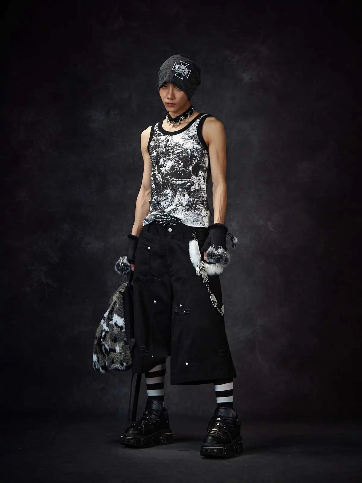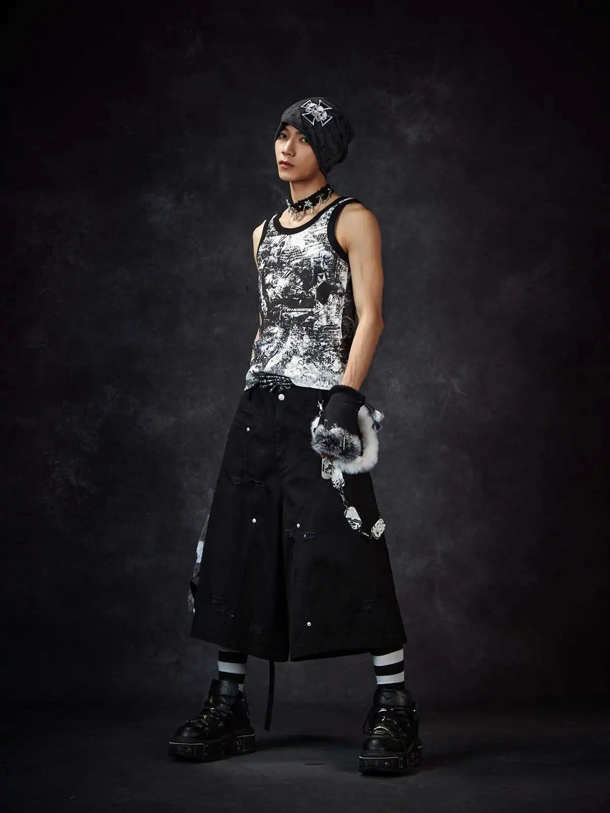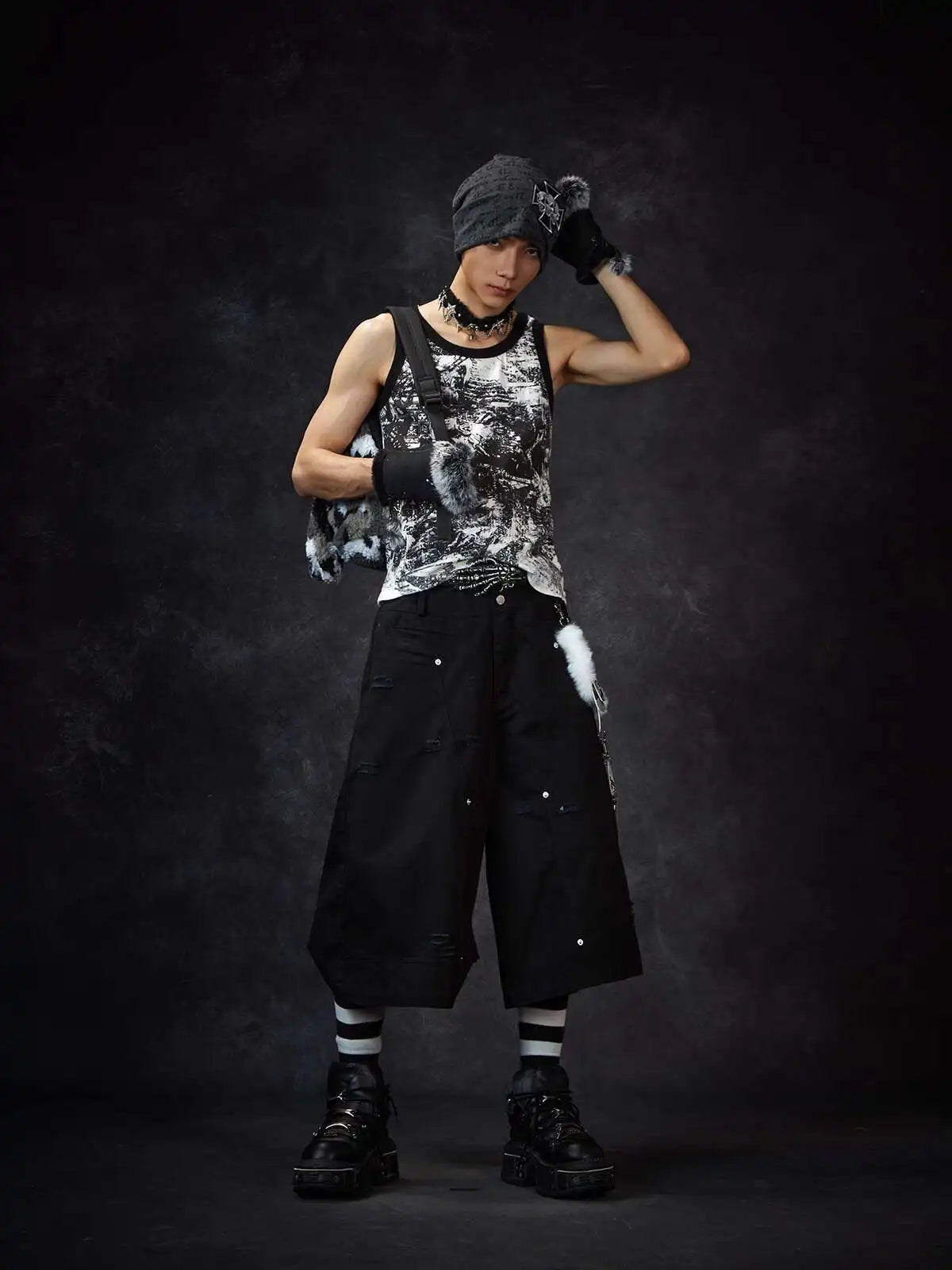 LUZHEN Streifen Patchwork Einfarbig Geerntete Hosen Männer 2025, Neue Lose Gerade Straße Casual Shorts Hosen Männliche Kleidung JY1609 Festival Outfits | Techno Shirts | Rave Clothing