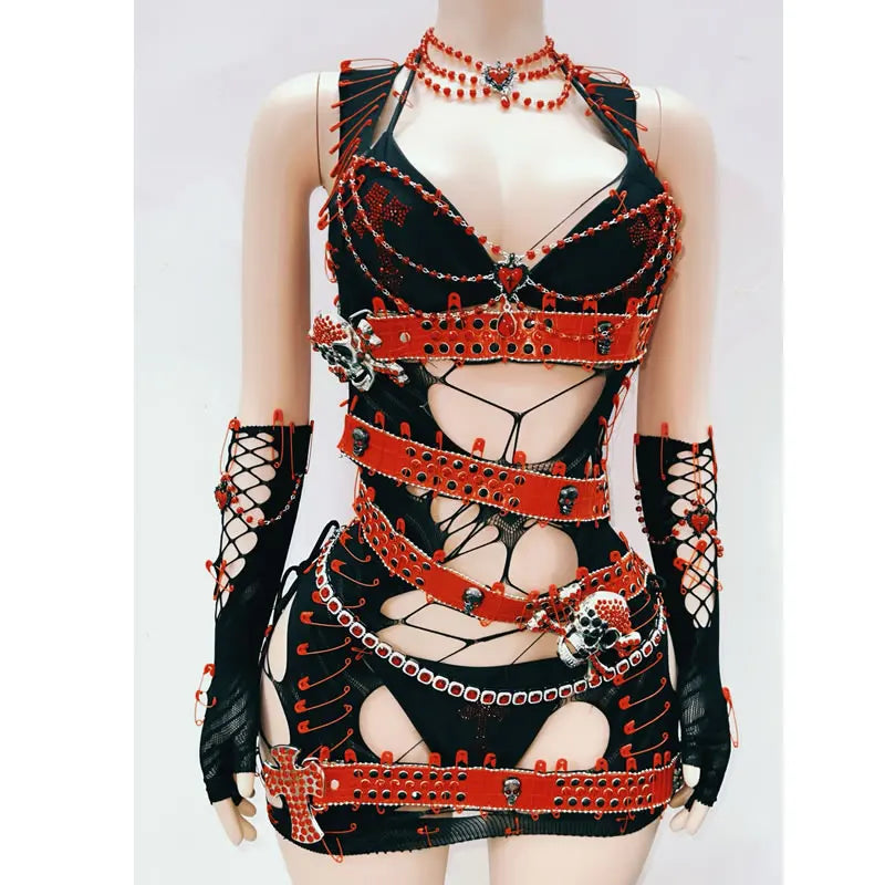 Totenkopfkleid Harajuku Kleid Y2K Kleid Sexy Kleid Einzigartiges Kleid Kreuzkleid Gothic Kleidung Y2K Kleidung Vintage Kleid Y2K Mode Festival Outfits | Techno Shirts | Rave Clothing