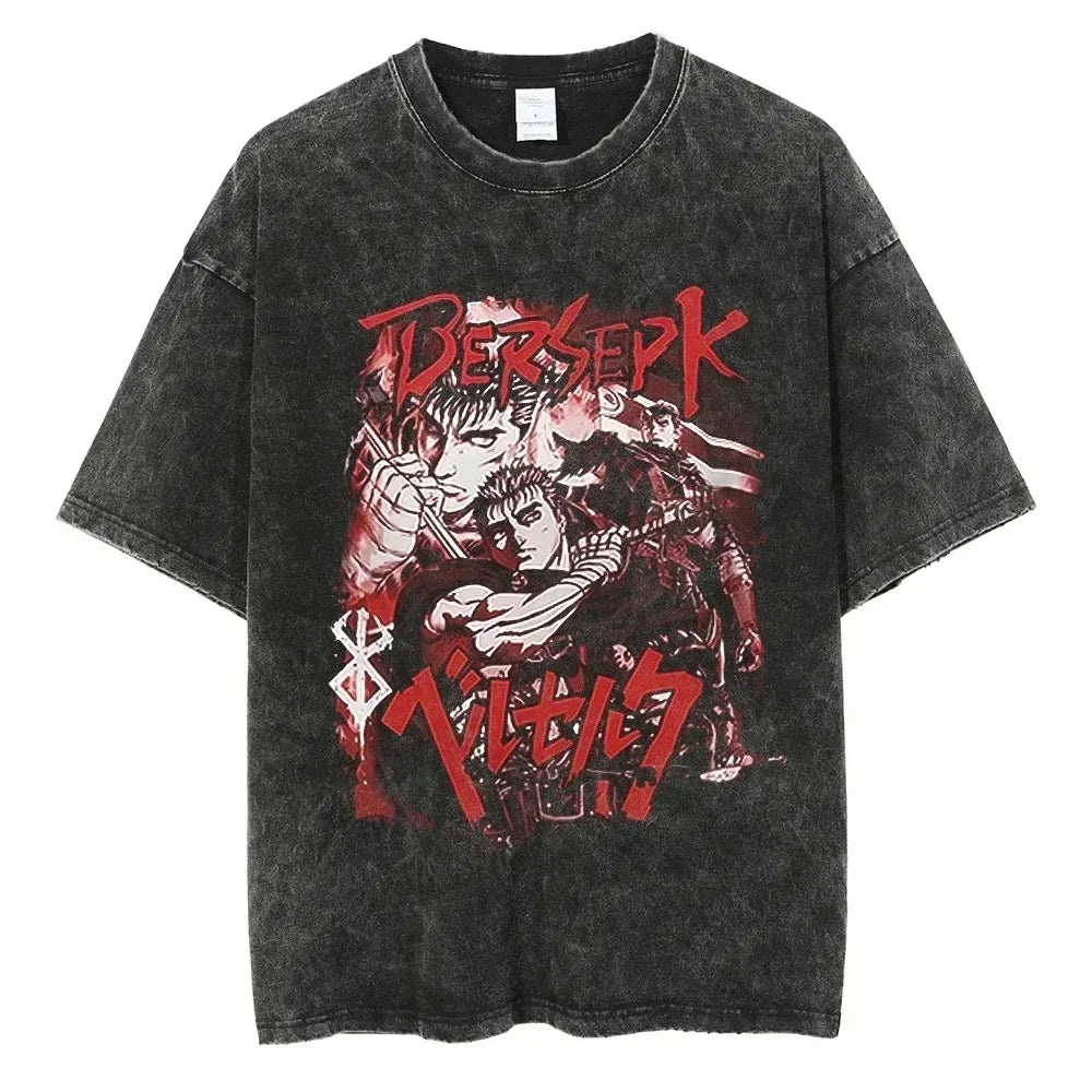 Berserk Print T-Shirt Männer Vintage gewaschen T-Shirt Anime Mut Grafik T-Shirt HipHop Streetwear T-Shirts Sommer lässig Berserker Kleidung FESTIVAL OUTFITS & STREETWEAR