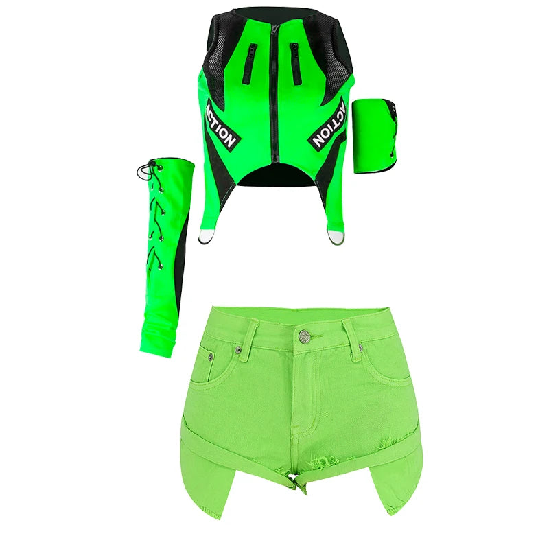 2023 Jazz Dance Costumes For Women Sexy Fluorescent Green Tops Shorts Kpop Outfits Nightclub Bar Gogo Dancers Clothes DQS12771 Festival Outfits | Techno Shirts | Rave Clothing