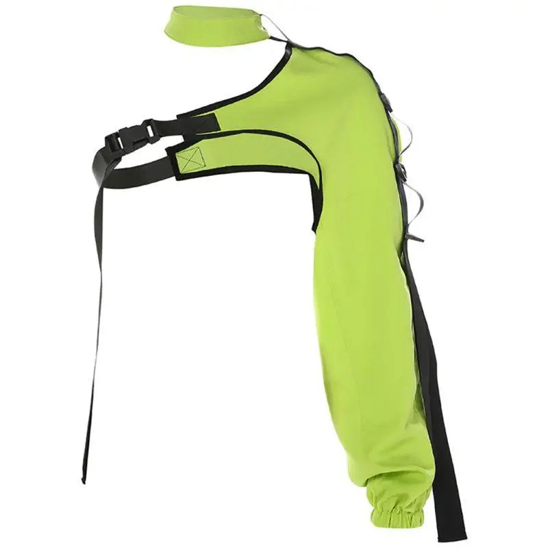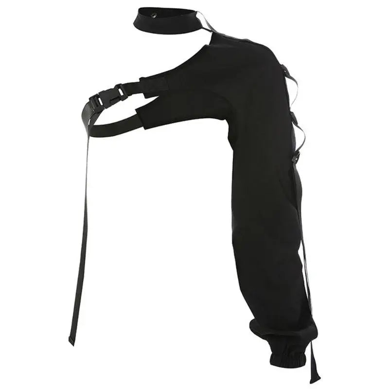 Frauen Sexy Eine Schulter Reflektierende Crop Tops Halsband Einstellbar Schnalle Lange Hülse Abdeckung Up Unregelmäßigen T-Shirt Rave Shrugs FESTIVAL OUTFITS & STREETWEAR