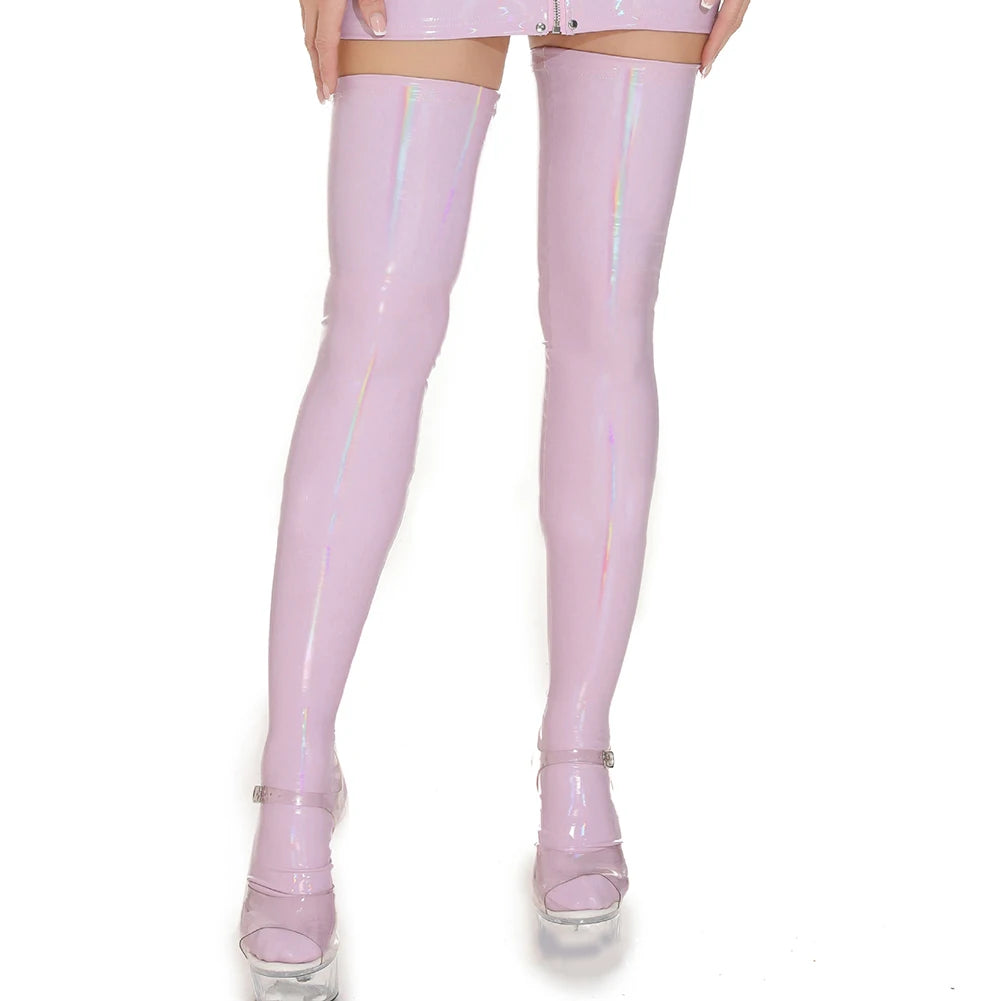 1 Paar Damen glänzende Pu Leder Oberschenkel hohe Strümpfe enge lange Socken Wet Look Clubwear Damen Casual Socken FESTIVAL OUTFITS & STREETWEAR