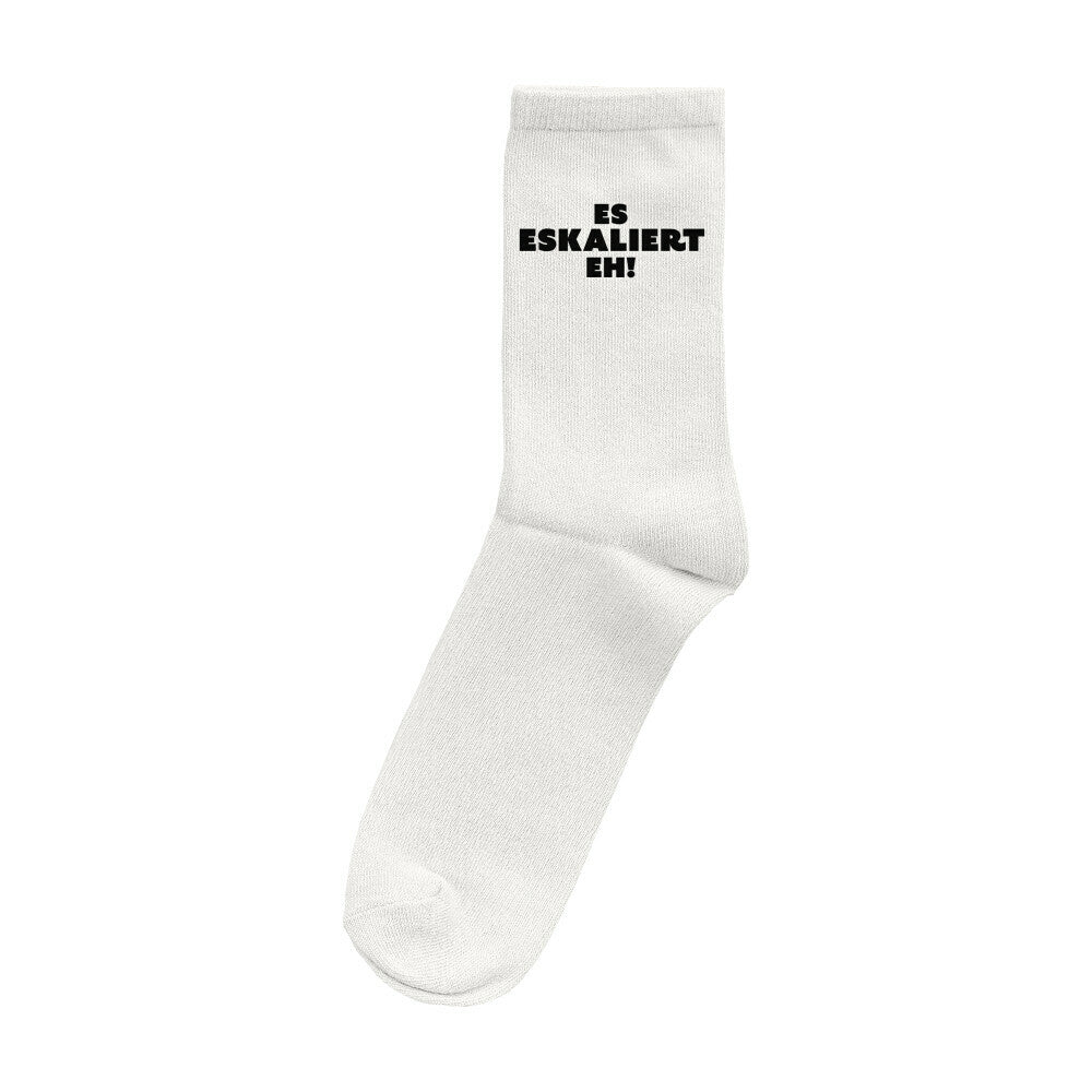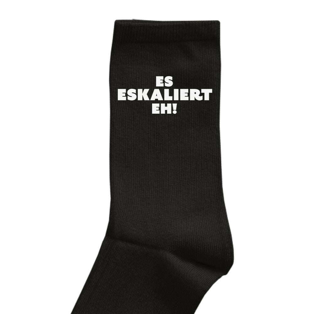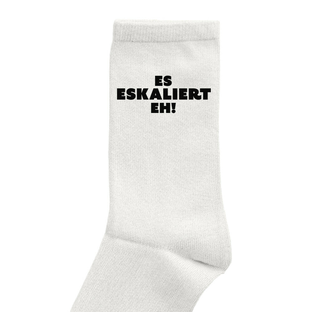 "Es eskaliert eh" Statement Party Socken