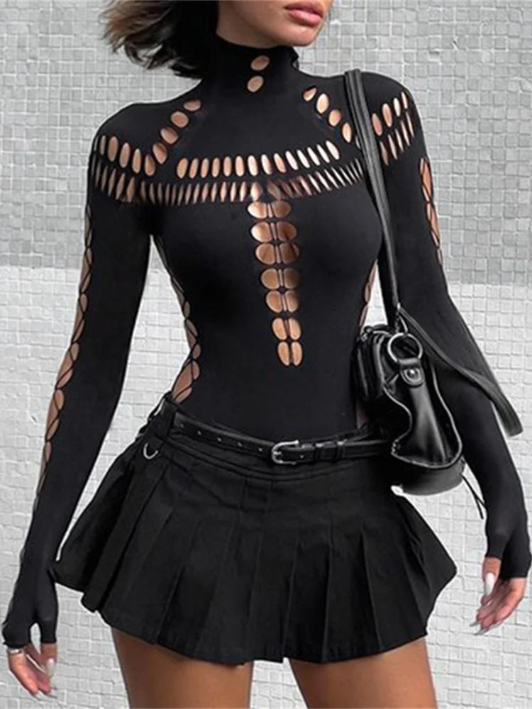 Der "Midnight Edge" Body setzt auf ein sorgfältig durchdachtes Cut-Out-Muster, das strategisch platziert ist, um genau die richtige Menge Haut zu zeigen und dennoch genügend Halt zu bieten. Das hochwertige Material und die perfekte Verarbeitung sorgen dafür, dass du dich auf die Qualität verlassen kannst – kein Verrutschen, kein Ausleiern.