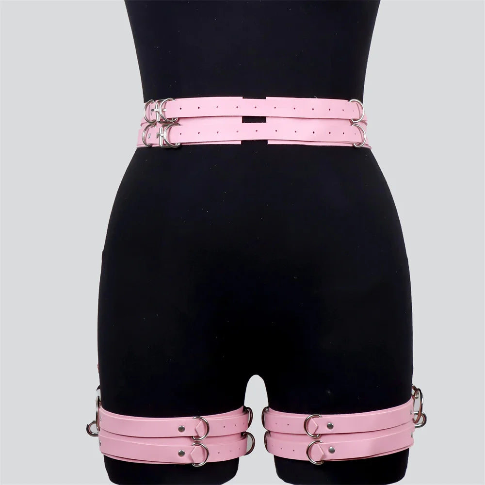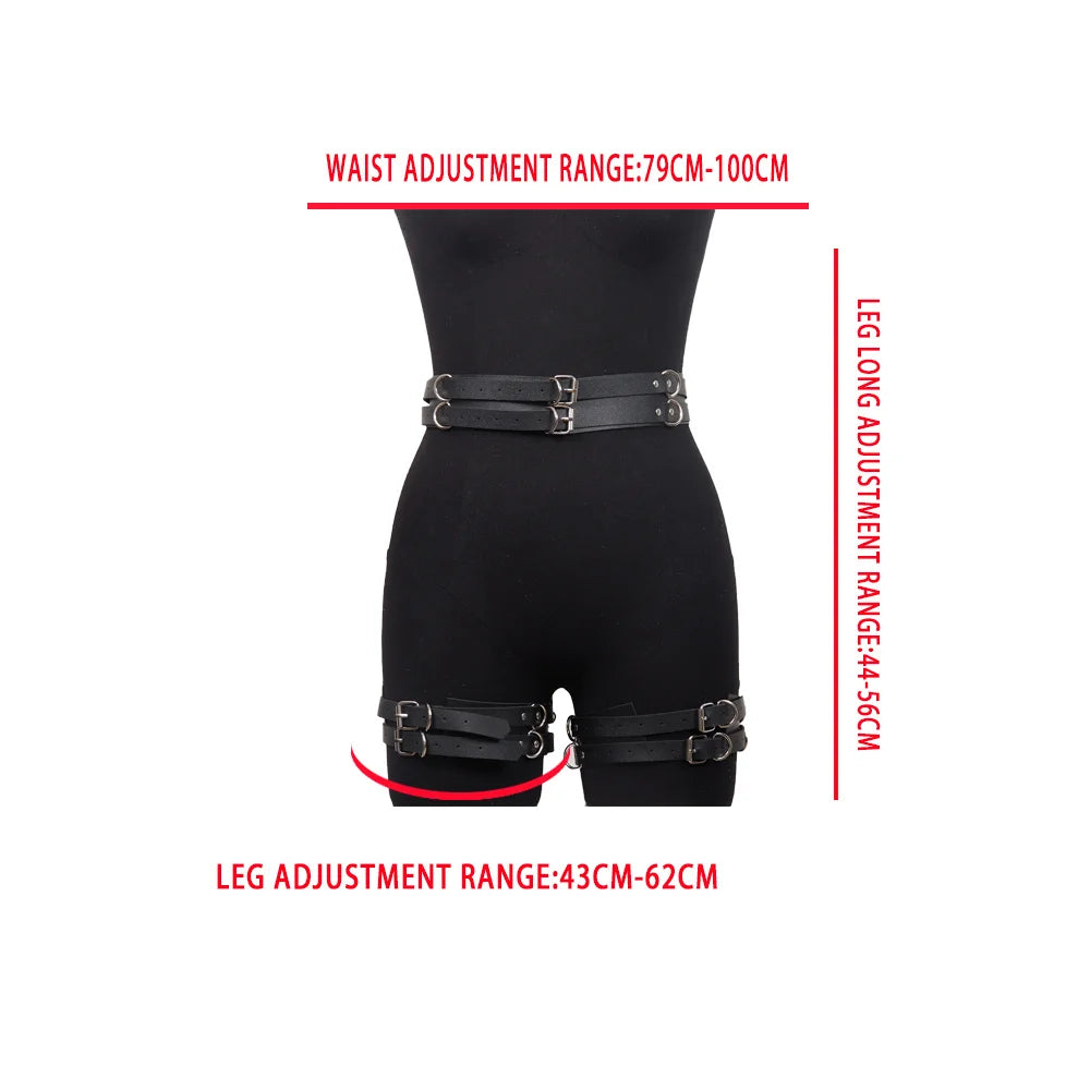 Mit einem Material aus Kunstleder ist dieses Sexy Strumpfband Ledergeschirr für Frauen konzipiert, die den Gothic-Stil schätzen und nach BDSM-inspirierten Dessous suchen. Es enthält einen Bondage-Gürtel mit Oberschenkelgurten, der sich perfekt für die Verbesserung intimer Erlebnisse eignet. Als Produkt für Erwachsene über 18 Jahre ist dieses Stück ein Muss für diejenigen, die hochwertige, einzigartige und provokante Dessous suchen.