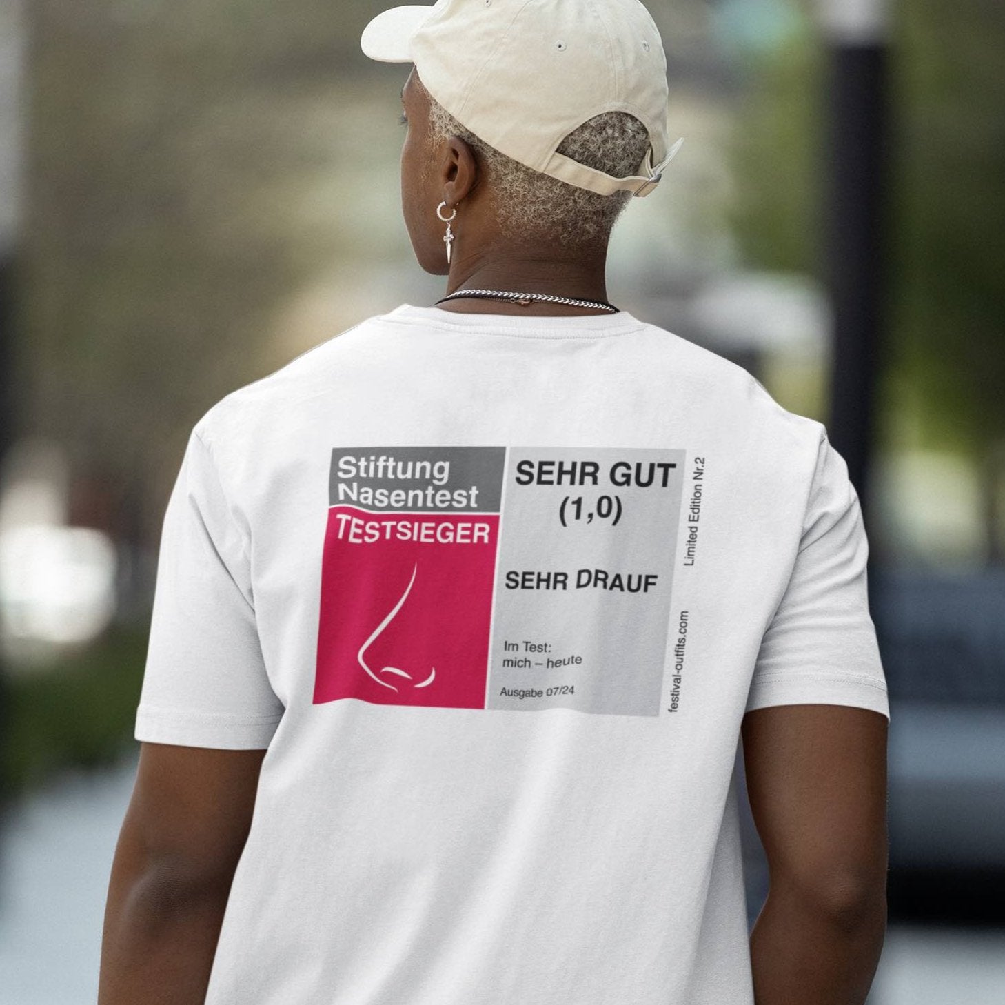 "Stiftung Nasentest – sehr drauf" Oversized Shirt (Backprint)